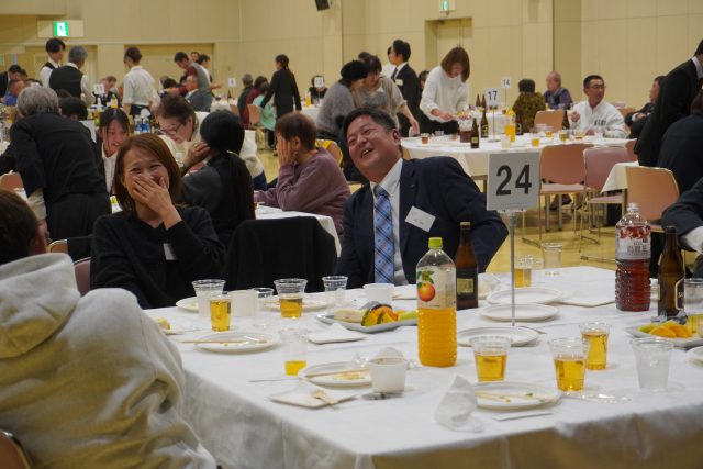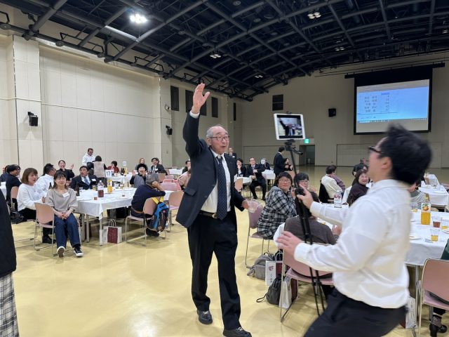 150名を超える社員と管理社員一同が集い、おいしい食事やお酒と共に思い出話に花が咲きました。