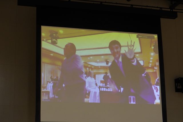 表彰式の後は社員同士が一年間の労をねぎらいながら親睦を深める、歓談の時間となりました。また、大型モニターにて九州支店と会場の様子をリアルタイムに接続。両会場の様子を互いに映し出し、物理的な距離を超えた一体感のある温かい交流が実現しました😊